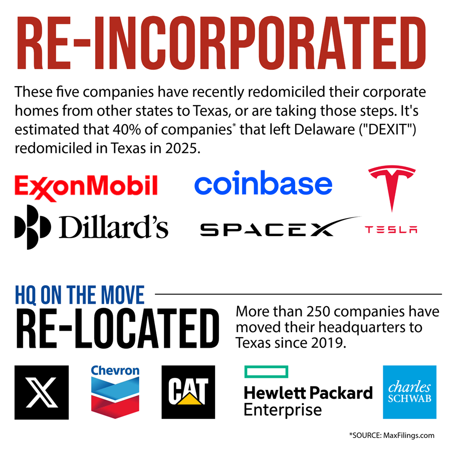 It’s another big week in Texas business news with ExxonMobil announcing it wants to go all-in on the Lone Star State. The predecessor to ExxonMobil, Standard Oil Co., was incorporated in New Jersey in 1882. Although the company has been headquartered in northwest Houston since 1989, it has not changed its site of incorporation in 143 years. But ExxonMobil has now announced plans to move its official corporate domicile from New Jersey to Texas, pending shareholder approval.