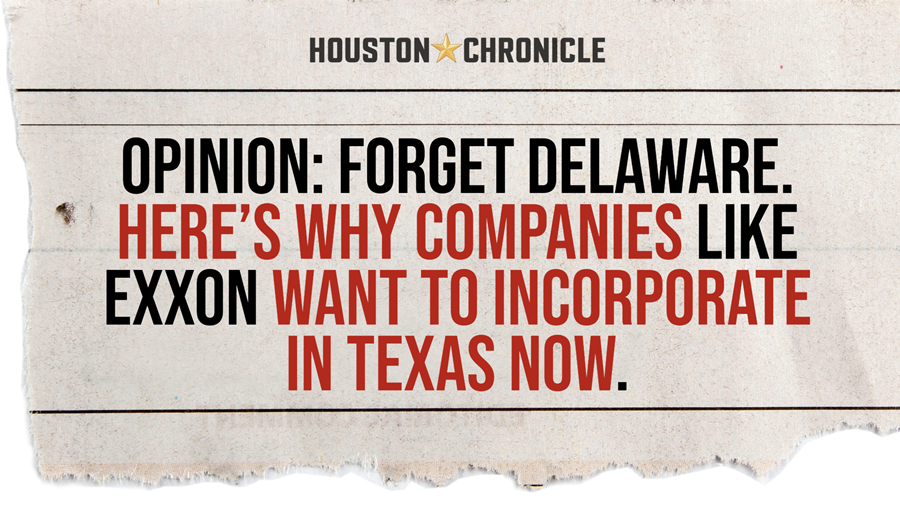 “Unlike Delaware, Texas offers businesses more than a predictable business legal system and a place to put a P.O. box — the state also offers an attractive location for companies to build, hire and create. By bringing together effective legal institutions, a competitive regulatory philosophy, a robust economy and real-world growth opportunities for everyday people, Texas is offering a one-stop shop for corporations to better innovate and compete on the global stage.”